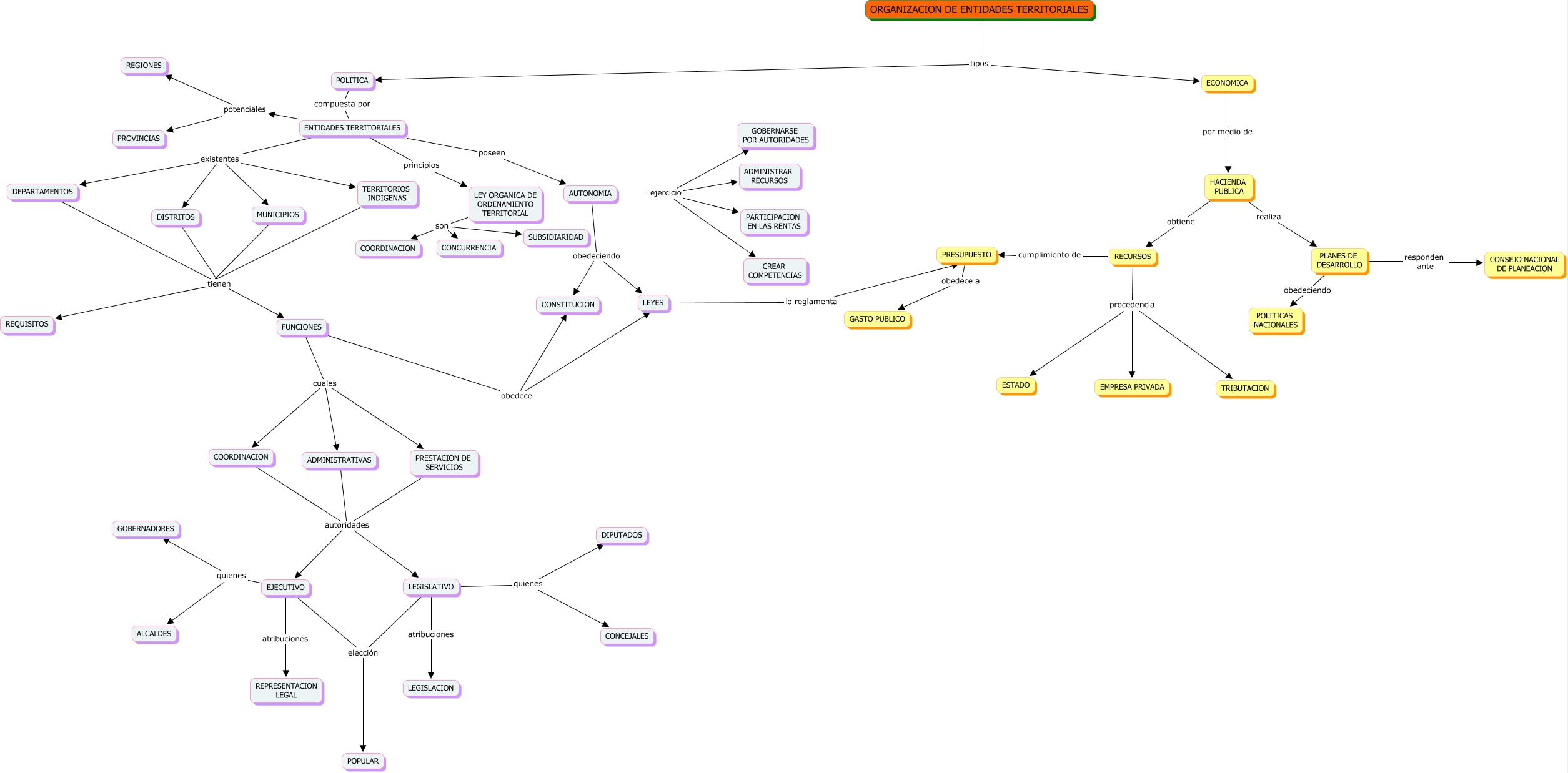REGIMEN CONSTITUCIONAL PATRICIA NIÑO 08478, LEGISLATIVO quienes DIPUTADOS, EJECUTIVO atribuciones REPRESENTACION LEGAL, PRESTACION DE SERVICIOS autoridades LEGISLATIVO, LEGISLATIVO atribuciones LEGISLACION, ECONOMICA por medio de HACIENDA PUBLICA, PRESUPUESTO obedece a GASTO PUBLICO, FUNCIONES cuales COORDINACION, FUNCIONES cuales ADMINISTRATIVAS, DISTRITOS tienen FUNCIONES, LEY ORGANICA DE ORDENAMIENTO TERRITORIAL son SUBSIDIARIDAD
