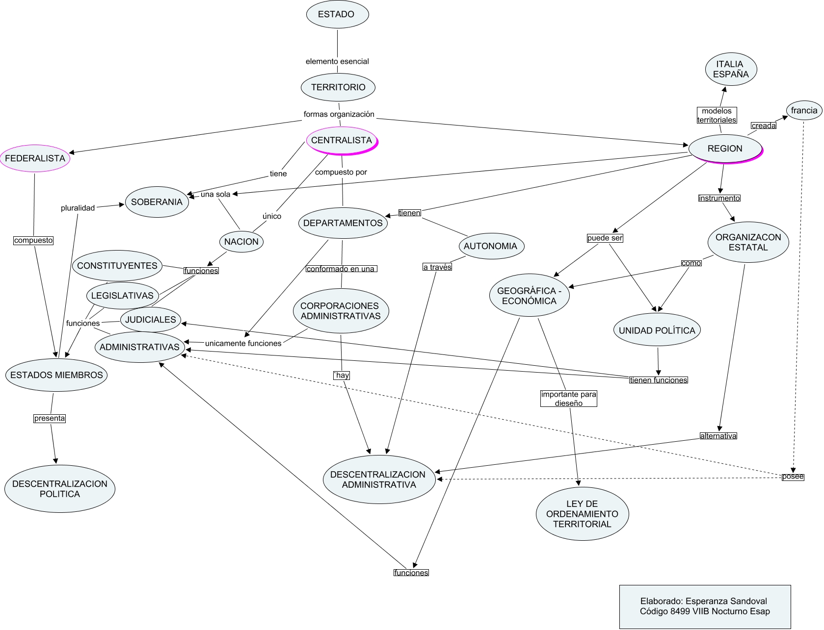 La Región como tercer modelo de organización territorial del Estado, UNIDAD POLÍTICA tienen funciones JUDICIALES, TERRITORIO formas organización REGION, ESTADOS MIEMBROS presenta DESCENTRALIZACION POLITICA, GEOGRÁFICA - ECONÓMICA funciones ADMINISTRATIVAS, CENTRALISTA único NACION, REGION puede ser UNIDAD POLÍTICA, REGION modelos territoriales ITALIA ESPAÑA, NACION funciones JUDICIALES, GEOGRÁFICA - ECONÓMICA importante para dieseño LEY DE ORDENAMIENTO TERRITORIAL, CORPORACIONES ADMINISTRATIVAS `hay DESCENTRALIZACION ADMINISTRATIVA
