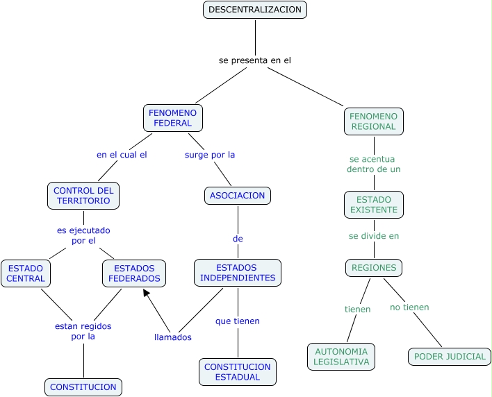 Capitulo 4, FENOMENO FEDERAL en el cual el CONTROL DEL TERRITORIO, CONTROL DEL TERRITORIO es ejecutado por el ESTADO CENTRAL, ESTADOS INDEPENDIENTES que tienen CONSTITUCION ESTADUAL, CONTROL DEL TERRITORIO es ejecutado por el ESTADOS FEDERADOS, ESTADOS INDEPENDIENTES llamados ESTADOS FEDERADOS, DESCENTRALIZACION se presenta en el FENOMENO FEDERAL, REGIONES tienen AUTONOMIA LEGISLATIVA, DESCENTRALIZACION se presenta en el FENOMENO REGIONAL, REGIONES no tienen PODER JUDICIAL, ESTADOS FEDERADOS estan regidos por la CONSTITUCION