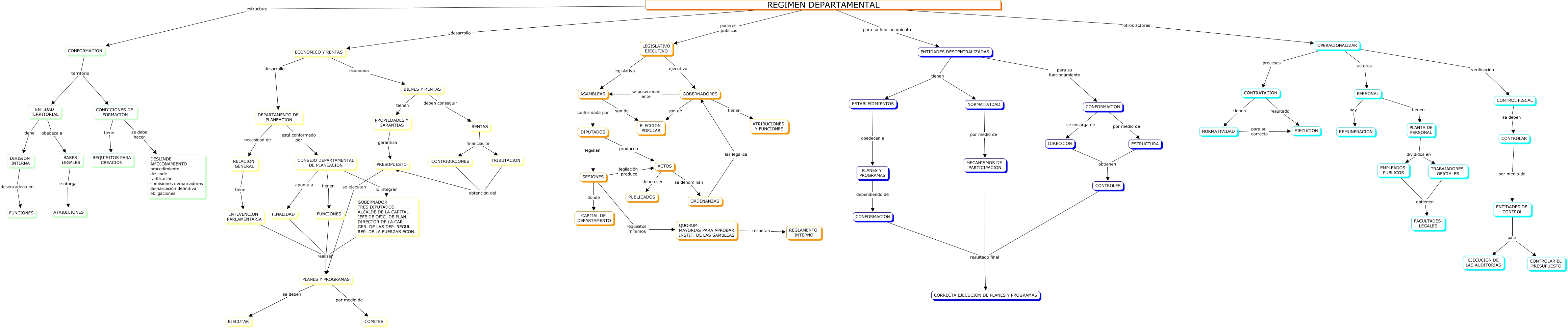 REGIMEN DEPARTAMENTAL LEONARDO ORTIZ 08482, ASAMBLEAS conformada por DIPUTADOS, CONSEJO DEPARTAMENTAL DE PLANEACION tienen FUNCIONES, ENTIDADES DE CONTROL para EJECUCION DE LAS AUDITORIAS, BIENES Y RENTAS tienen PROPIEDADES Y GARANTIAS, PLANTA DE PERSONAL divididos en TRABAJADORES OFICIALES, EMPLEADOS PUBLICOS obtienen FACULTADES LEGALES, PLANES Y PROGRAMAS dependiendo de CONFORMACION, PROPIEDADES Y GARANTIAS garantiza PRESUPUESTO, PRESUPUESTO se ejecutan PLANES Y PROGRAMAS, OPERACIONALIZAR actores PERSONAL