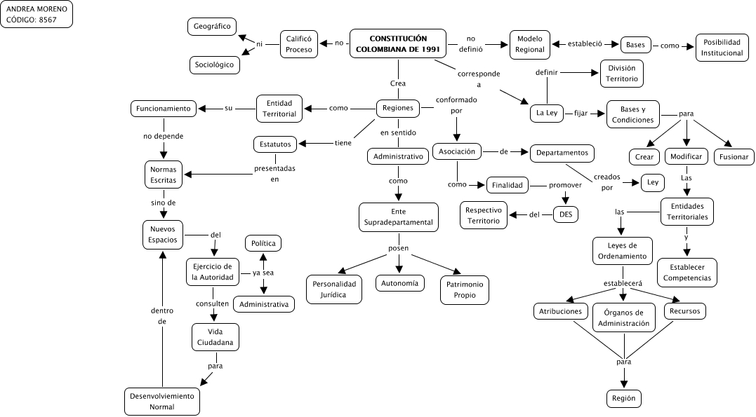 LA REGIÓN EN LA CONSTITUCIÓN COLOMBIANA DE 1991, ANDREA MORENO, Entidades Territoriales las Leyes de Ordenamiento, Administrativo como Ente Supradepartamental, Leyes de Ordenamiento establecerá Recursos, Regiones tiene Estatutos, Ejercicio de la Autoridad ya sea Administrativa, Bases y Condiciones para Crear, Calificó Proceso ni Geográfico, Regiones como Entidad Territorial, Ejercicio de la Autoridad consulten Vida Ciudadana, Calificó Proceso ni Sociológico