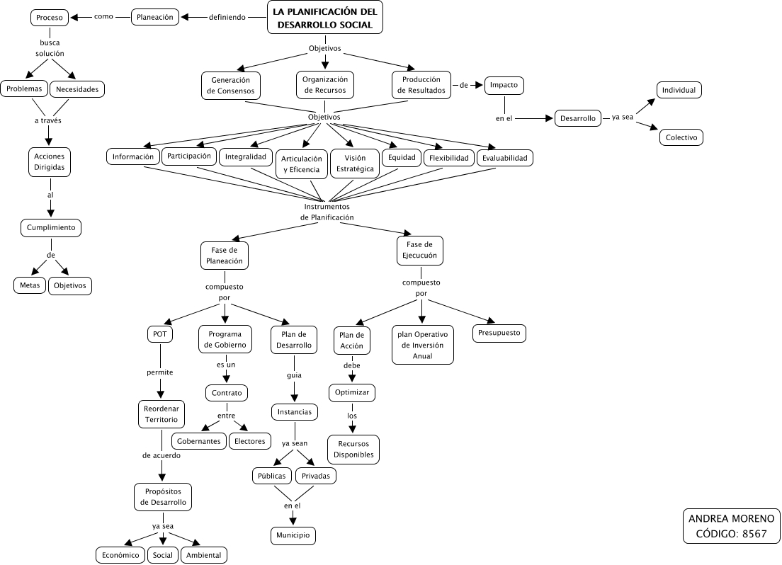 PLANIFICACIÓN DEL DESARROLLO SOCIAL, ANDREA MORENO, Acciones Dirigidas al Cumplimiento, Organización de Recursos Objetivos Integralidad, Problemas a través Acciones Dirigidas, Integralidad Instrumentos de Planificación Fase de Planeación, Proceso busca solución Necesidades, Propósitos de Desarrollo ya sea Ambiental, LA PLANIFICACIÓN DEL DESARROLLO SOCIAL Objetivos Organización de Recursos, Instancias ya sean Privadas, Generación de Consensos Objetivos Participación, Proceso busca solución Problemas
