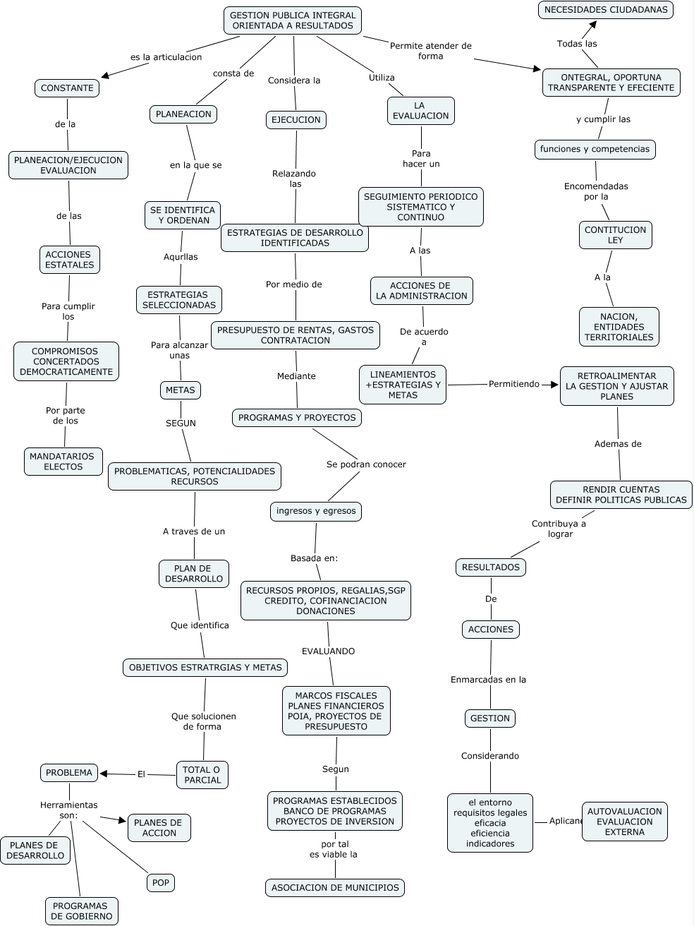 GESTION ORIENTADA A RESULTADOS, LINEAMIENTOS +ESTRATEGIAS Y METAS Permitiendo RETROALIMENTAR LA GESTION Y AJUSTAR PLANES, el entorno requisitos legales eficacia eficiencia indicadores Aplicando AUTOVALUACION EVALUACION EXTERNA, RETROALIMENTAR LA GESTION Y AJUSTAR PLANES Ademas de RENDIR CUENTAS DEFINIR POLITICAS PUBLICAS, RECURSOS PROPIOS, REGALIAS,SGP CREDITO, COFINANCIACION DONACIONES EVALUANDO MARCOS FISCALES PLANES FINANCIEROS POIA, PROYECTOS DE PRESUPUESTO, PROBLEMA Herramientas son: PROGRAMAS DE GOBIERNO, PLAN DE DESARROLLO Que identifica OBJETIVOS ESTRATRGIAS Y METAS, ACCIONES ESTATALES Para cumplir los COMPROMISOS CONCERTADOS DEMOCRATICAMENTE, funciones y competencias Encomendadas por la CONTITUCION LEY, ACCIONES DE LA ADMINISTRACION De acuerdo a LINEAMIENTOS +ESTRATEGIAS Y METAS, TOTAL O PARCIAL El PROBLEMA