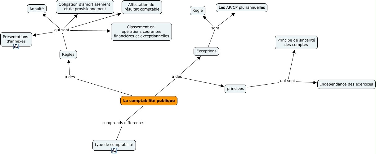 _Comptabilité publique, Régles qui sont Classement en opérations courantes financières et exceptionnelles, Exceptions sont Les AP/CP pluriannuelles, Régles qui sont Affectation du résultat comptable, principes qui sont Indépendance des exercices, Exceptions sont Régie, principes qui sont Principe de sincérité des comptes, La comptabilité publique a des Régles, La comptabilité publique a des Exceptions, Régles qui sont Présentations d'annexes, Régles qui sont Annuité