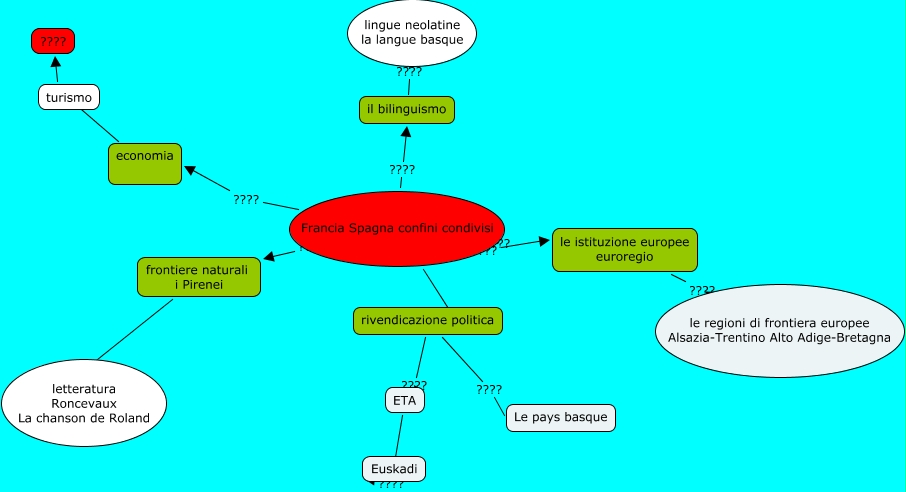 Francia Spagna, Francia Spagna confini condivisi ???? il bilinguismo, economia ???? ????, le istituzione europee euroregio ???? le regioni di frontiera europee Alsazia-Trentino Alto Adige-Bretagna, rivendicazione politica ???? ETA, frontiere naturali i Pirenei ???? letteratura Roncevaux La chanson de Roland, Francia Spagna confini condivisi ???? economia, economia ???? turismo, Francia Spagna confini condivisi ???? le istituzione europee euroregio, ETA ???? Euskadi, Francia Spagna confini condivisi ???? frontiere naturali i Pirenei