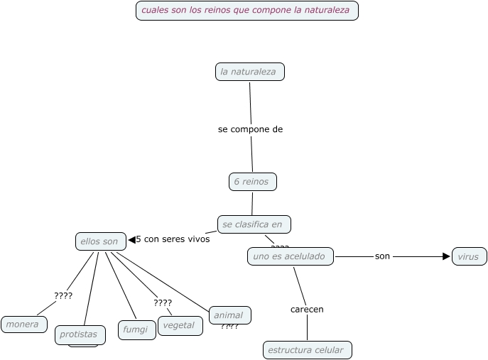 la naturaleza, ellos son ???? ????, la naturaleza se compone de 6 reinos, ellos son ???? vegetal, se clasifica en 5 con seres vivos ellos son, se clasifica en ???? uno es acelulado, ellos son ???? animal, ellos son ???? protistas, ellos son ???? protistas, ellos son ???? monera, uno es acelulado son virus