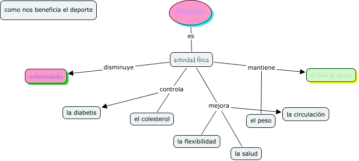 el deporte 2, actividad física controla la diabetis, actividad física disminuye enfermedades, Deporte es actividad física, actividad física mantiene el nivel de azúcar, actividad física controla el colesterol, actividad física mantiene el peso, actividad física mejora la circulación, actividad física mejora la flexibilidad, actividad física mejora la salud