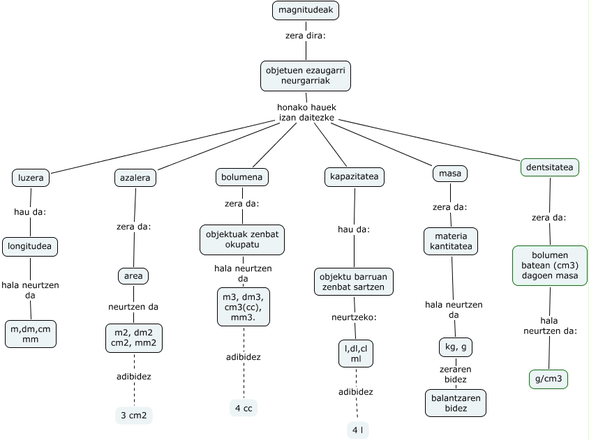 1cTxominTxomin, longitudea hala neurtzen da m,dm,cm mm, objetuen ezaugarri neurgarriak honako hauek izan daitezke masa, magnitudeak zera dira: objetuen ezaugarri neurgarriak, kapazitatea hau da: objektu barruan zenbat sartzen, objektuak zenbat okupatu hala neurtzen da m3, dm3, cm3(cc), mm3., m3, dm3, cm3(cc), mm3. adibidez 4 cc, objetuen ezaugarri neurgarriak honako hauek izan daitezke luzera, masa zera da: materia kantitatea, objetuen ezaugarri neurgarriak honako hauek izan daitezke azalera, materia kantitatea hala neurtzen da kg, g