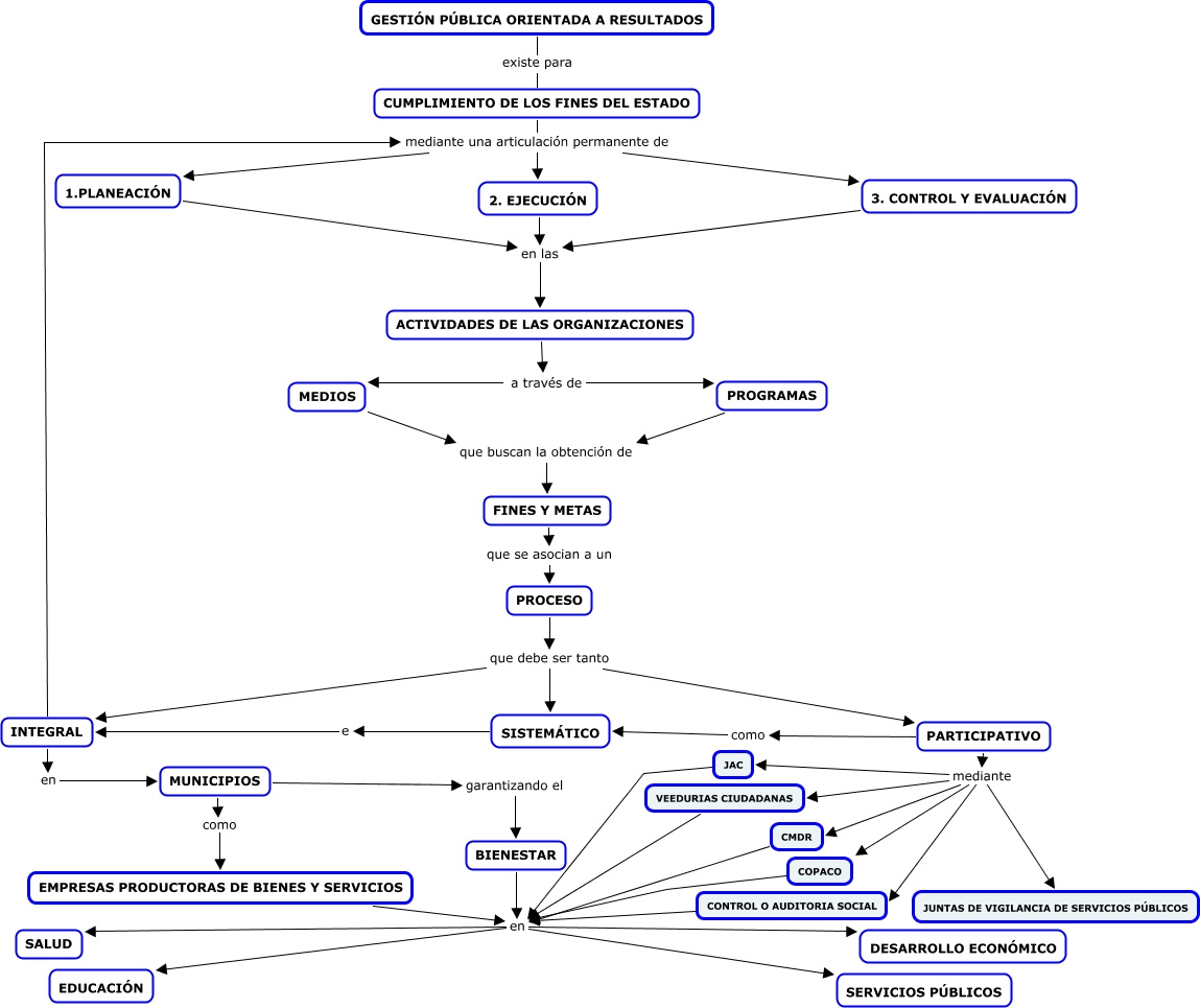 GESTIÓN PÚBLICA ORIENTADA A RESULTADOS_ALEJO RODRIGUEZ_8310, FINES Y METAS que se asocian a un PROCESO, ACTIVIDADES DE LAS ORGANIZACIONES a través de MEDIOS, PROCESO que debe ser tanto SISTEMÁTICO, JAC en DESARROLLO ECONÓMICO, VEEDURIAS CIUDADANAS en DESARROLLO ECONÓMICO, MUNICIPIOS garantizando el BIENESTAR, JAC en SERVICIOS PÚBLICOS, CUMPLIMIENTO DE LOS FINES DEL ESTADO mediante una articulación permanente de 3. CONTROL Y EVALUACIÓN, 3. CONTROL Y EVALUACIÓN en las ACTIVIDADES DE LAS ORGANIZACIONES, MUNICIPIOS como EMPRESAS PRODUCTORAS DE BIENES Y SERVICIOS