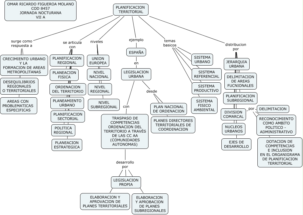 8457_PLANIFICACION_TERRITORIAL, PLANIFICACION TERRITORIAL ejemplo ESPAÑA, PLANIFICACION TERRITORIAL distribucion por JERARQUIA URBANA, DIVISION COMARCAL por DELIMITACION, PLANIFICACION TERRITORIAL temas basicos SISTEMA REFERENCIAL, DIVISION COMARCAL por RECONOCIMIENTO COMO AMBITO POLITICO - ADMINISTRATIVO, PLANIFICACION TERRITORIAL distribucion por PLANIFICACION SUBREGIONAL, PLANIFICACION TERRITORIAL se articula con PLANIFICACION REGIONAL, LEGISLACION URBANA con TRASPASO DE COMPETENCIAS ORDENACION DEL TERRITORIO A TRAVÉS DE LAS CC AA (COMUNIDADES AUTONOMAS), PLANIFICACION TERRITORIAL surge como respuesta a AREAS CON PROBLEMATICAS ESPECIFICAS, TRASPASO DE COMPETENCIAS ORDENACION DEL TERRITORIO A TRAVÉS DE LAS CC AA (COMUNIDADES AUTONOMAS) desarrollo por ELABORACION Y APROBACION DE PLANES SUBREGIONALES