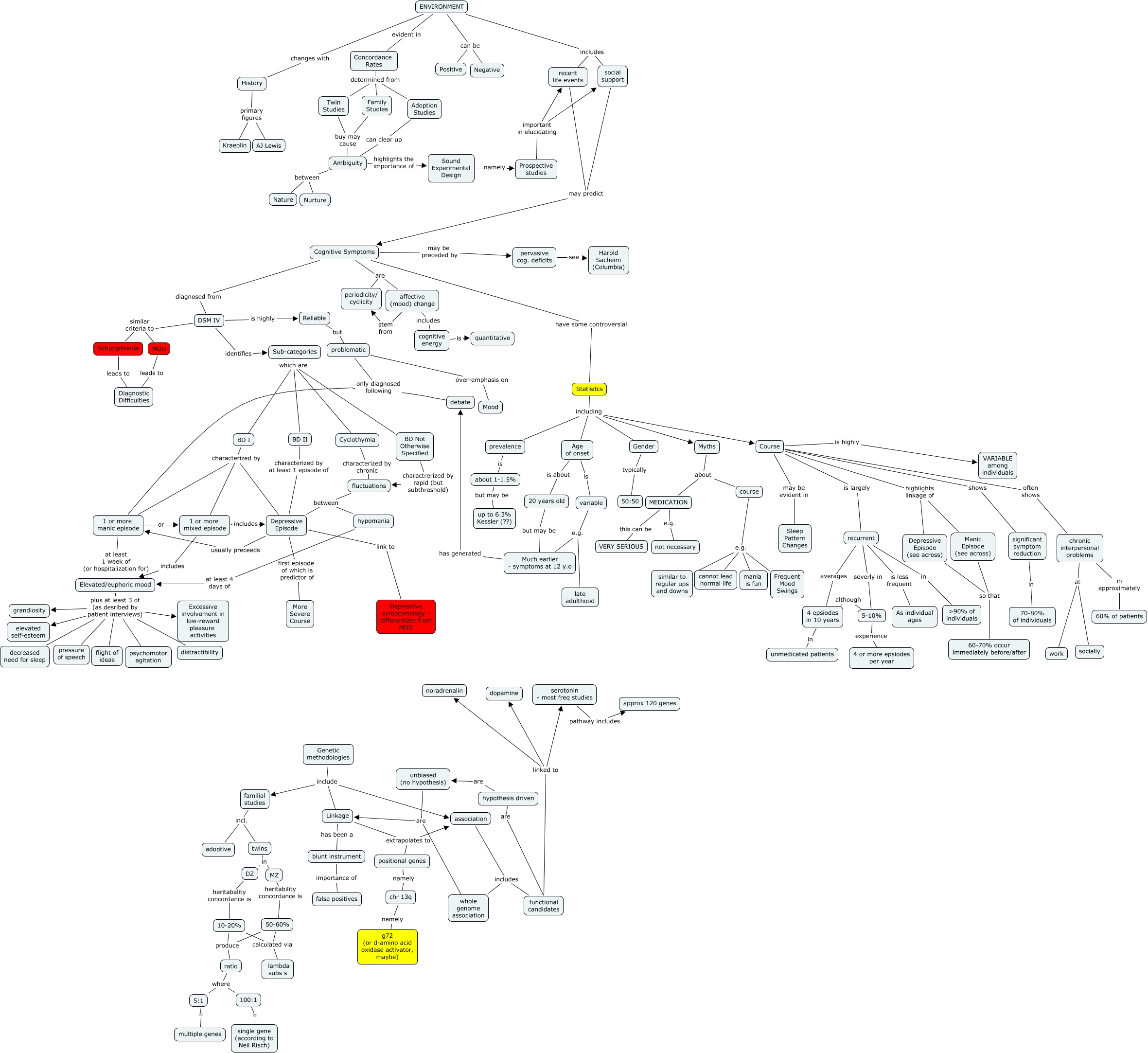 BD Final, prevalence is about 1-1.5%, Age of onset is variable, Genetic methodologies include familial studies, BD I characterized by Depressive Episode, Linkage has been a blunt instrument, Cyclothymia characterized by chronic fluctuations, recurrent averages 4 epsiodes in 10 years, debate only diagnosed following 1 or more manic episode, 1 or more manic episode at least 1 week of (or hospitalization for) Elevated/euphoric mood, Concordance Rates determined from Family Studies