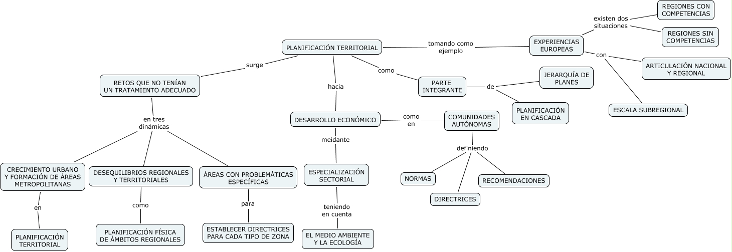PLANIFICACIÓN TERRITORIAL.Patricia Onatra, ESPECIALIZACIÓN SECTORIAL teniendo en cuenta EL MEDIO AMBIENTE Y LA ECOLOGÍA, DESEQUILIBRIOS REGIONALES Y TERRITORIALES como PLANIFICACIÓN FÍSICA DE ÁMBITOS REGIONALES, CRECIMIENTO URBANO Y FORMACIÓN DE ÁREAS METROPOLITANAS en tres dinámicas DESEQUILIBRIOS REGIONALES Y TERRITORIALES, COMUNIDADES AUTÓNOMAS definiendo RECOMENDACIONES, CRECIMIENTO URBANO Y FORMACIÓN DE ÁREAS METROPOLITANAS en tres dinámicas ÁREAS CON PROBLEMÁTICAS ESPECÍFICAS, CRECIMIENTO URBANO Y FORMACIÓN DE ÁREAS METROPOLITANAS en PLANIFICACIÓN TERRITORIAL, RETOS QUE NO TENÍAN UN TRATAMIENTO ADECUADO en tres dinámicas ÁREAS CON PROBLEMÁTICAS ESPECÍFICAS, COMUNIDADES AUTÓNOMAS definiendo DIRECTRICES, RETOS QUE NO TENÍAN UN TRATAMIENTO ADECUADO en tres dinámicas DESEQUILIBRIOS REGIONALES Y TERRITORIALES, PLANIFICACIÓN TERRITORIAL hacia DESARROLLO ECONÓMICO