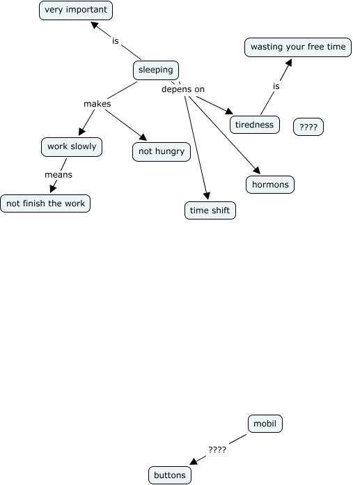 nur, sleeping depens on time shift, sleeping depens on tiredness, work slowly means not finish the work, sleeping makes not hungry, mobil ???? buttons, sleeping makes work slowly, tiredness is wasting your free time, sleeping depens on hormons, sleeping is very important