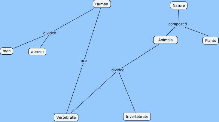 Rocio, Nature composed Plants, Human divided women, Human divided men, Animals divided Vertebrate, Human are Vertebrate, Animals divided Invertebrate, Nature composed Animals