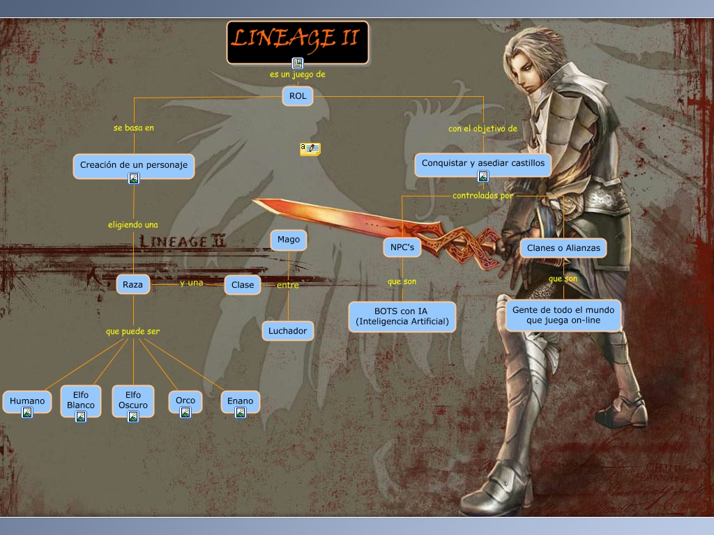 LineageII, Conquistar y asediar castillos controlados por Clanes o Alianzas, Raza que puede ser Orco, Raza que puede ser Enano, ROL se basa en Creación de un personaje, Raza que puede ser Humano, LINEAGE II es un juego de ROL, ROL con el objetivo de Conquistar y asediar castillos, Clase entre Mago, Raza que puede ser Elfo Blanco, Conquistar y asediar castillos controlados por NPC's