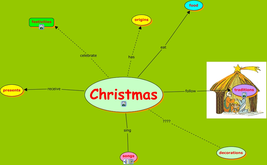mappa di natale, Christmas follow traditions, Christmas eat food, Christmas receive presents, Christmas sing songs, Christmas ???? decorations, Christmas celebrate festivities, Christmas has origins