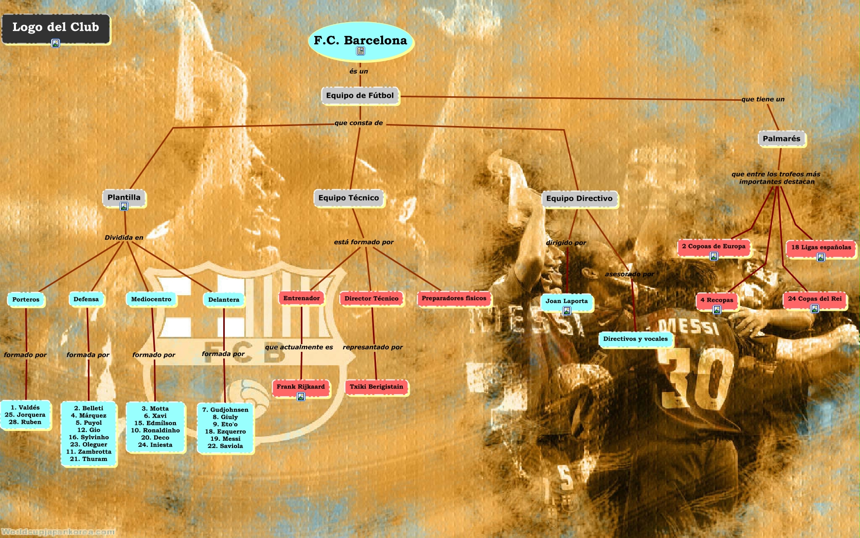 f.c.barcelona, Delantera formada por 7. Gudjohnsen 8. Giuly 9. Eto'o 18. Ezquerro 19. Messi 22. Saviola, Entrenador que actualmente es Frank Rijkaard, Equipo Técnico está formado por Entrenador, Equipo Directivo dirigido por Joan Laporta, Equipo de Fútbol que consta de Plantilla, Porteros formado por 1. Valdés 25. Jorquera 28. Ruben, F.C. Barcelona és un Equipo de Fútbol, Palmarés que entre los trofeos más importantes destacan 4 Recopas, Defensa formada por 2. Belleti 4. Márquez 5. Puyol 12. Gio 16. Sylvinho 23. Oleguer 11. Zambrotta 21. Thuram, Equipo de Fútbol que consta de Equipo Técnico