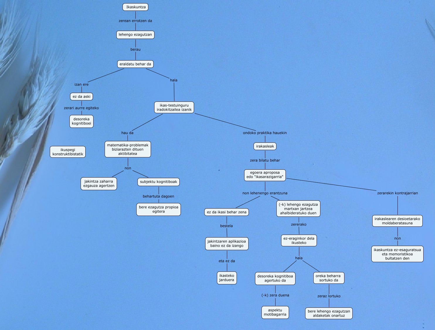 Matematikaren ikaskuntza II, matematika-problemak biziarazten dituen aktibitatea non jakintza zaharra ezgauza agertzen, egoera aproposa edo "ikasarazigarria" non lehenengo erantzuna (-k) lehengo ezagutza martxan jartzea ahalbideratuko duen, oreka beharra sortuko da zeraz lortuko bere lehengo ezagutzan aldaketak onartuz, ez da aski zerari aurre egiteko desoreka kognitiboei, egoera aproposa edo "ikasarazigarria" zerarekin kontrajarrian irakaslearen desioetarako moldaberatasuna, Ikaskuntza zerean errotzen da lehengo ezagutzan, matematika-problemak biziarazten dituen aktibitatea non subjektu kognitiboak, desoreka kognitiboa agertuko da (-k) zera duena aspektu motibagarria, ikas-testuinguru iradokitzailea izanik hau da matematika-problemak biziarazten dituen aktibitatea, lehengo ezagutzan berau eraldatu behar da