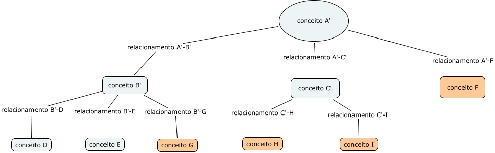 DPHC-segundo mapa, conceito C' relacionamento C'-H conceito H, conceito B' relacionamento B'-D conceito D, conceito A' relacionamento A'-B' conceito B', conceito A' relacionamento A'-C' conceito C', conceito A' relacionamento A'-F conceito F, conceito B' relacionamento B'-G conceito G, conceito B' relacionamento B'-E conceito E, conceito C' relacionamento C'-I conceito I