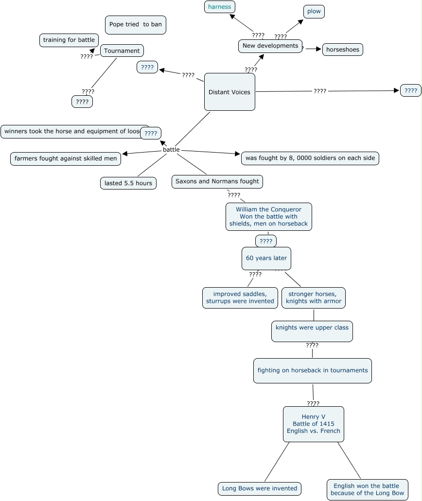 Carrie's Team, New developments ???? plow, fighting on horseback in tournaments ???? Long Bows were invented, Tournament ???? training for battle, Distant Voices battle farmers fought against skilled men, Distant Voices ???? ????, Distant Voices ???? New developments, fighting on horseback in tournaments ???? English won the battle because of the Long Bow, Distant Voices battle lasted 5.5 hours, 60 years later ???? improved saddles, sturrups were invented, Tournament ???? ????
