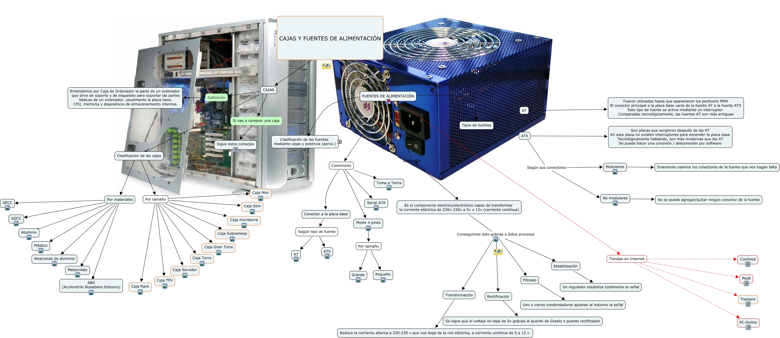 Cajas y Fuentes de alimentación, Clasificación de las cajas Por tamaño Caja Servidor, Clasificación de las cajas Por tamaño Caja Rack, FUENTES DE ALIMENTACIÓN Conectores Toma a Tierra, És el componente electrico/electrónico capaz de transformar la corriente eléctrica de 220v-230v a 5v o 12v (corriente contínua) Conseguimos ésto grácias a éstos procesos Rectificación, Por materiales ???? Aleaciones de aluminio, Clasificación de las fuentes mediante cajas y potencia (aprox.) Sobremesa AT 200-250 W, CAJAS Si vas a comprar una caja Sigue estos consejos, Clasificación de las cajas Por tamaño Caja microtorre, Transformación ???? Reduce la corriente alterna a 220-230 v que nos llega de la red eléctrica, a corriente contínua de 5 a 12 v, Por materiales ???? Metacrilato