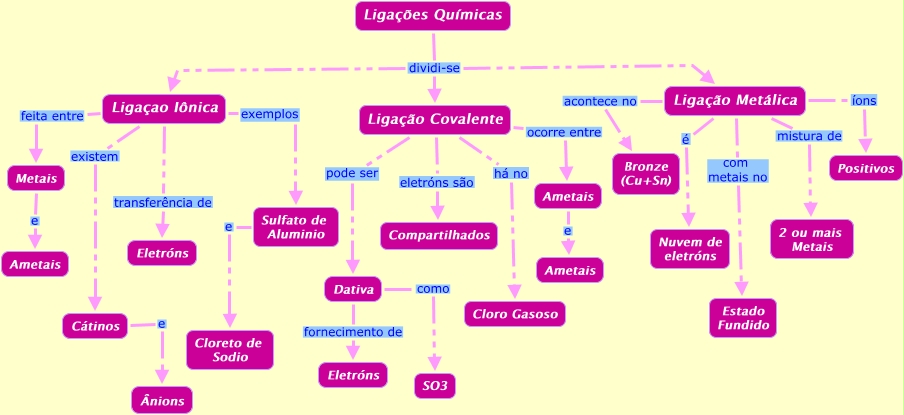 Lívia, Ligaçao Iônica transferência de Eletróns, Ametais e Ametais, Dativa fornecimento de Eletróns, Ligação Covalente há no Cloro Gasoso, Ligação Metálica mistura de 2 ou mais Metais, Ligação Metálica acontece no Bronze (Cu+Sn), Ligaçao Iônica feita entre Metais, Ligação Covalente eletróns são Compartilhados, Dativa como SO3, Metais e Ametais