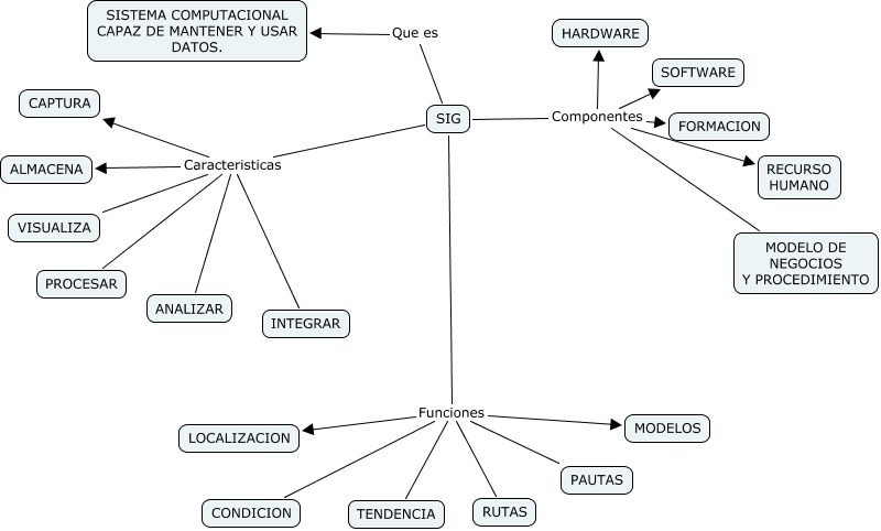 SIG, SIG Componentes FORMACION, SIG Funciones TENDENCIA, SIG Funciones LOCALIZACION, SIG Funciones MODELOS, SIG Caracteristicas ALMACENA, SIG Caracteristicas VISUALIZA, SIG Componentes RECURSO HUMANO, SIG Caracteristicas ANALIZAR, SIG Caracteristicas CAPTURA, SIG Funciones PAUTAS
