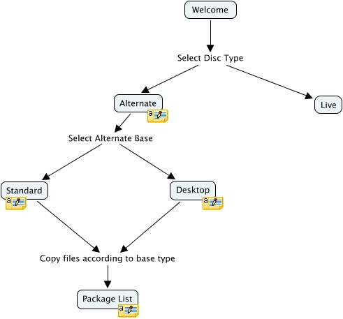 Reconstructor Overview, Alternate Select Alternate Base Desktop, Welcome Select Disc Type Alternate, Standard Copy files according to base type Package List, Welcome Select Disc Type Live, Desktop Copy files according to base type Package List, Alternate Select Alternate Base Standard