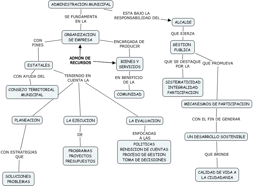 ADMON MUNICIPAL, ADMINISTRACION MUNICIPAL SE FUNDAMENTA EN LA ORGANIZACION DE EMPRESA, GESTION PUBLICA QUE SE DESTAQUE POR LA SISTEMATICIDAD INTEGRALIDAD PARTICIPACION, ESTATALES TENIENDO EN CUENTA LA LA EJECUCION, ESTATALES TENIENDO EN CUENTA LA PLANEACION, ALCALDE QUE EJERZA GESTION PUBLICA, LA EJECUCION DE PROGRAMAS PROYECTOS PRESUPUESTOS, LA EVALUACION ENFOCADAS A LAS POLITICAS RENDICION DE CUENTAS PROCESO DE GESTION TOMA DE DECISIONES, PLANEACION CON ESTRATEGIAS QUE SOLUCIONES PROBLEMAS, ESTATALES TENIENDO EN CUENTA LA LA EVALUACION, ESTATALES CON AYUDA DEL CONSEJO TERRITORIAL MUNICIPAL
