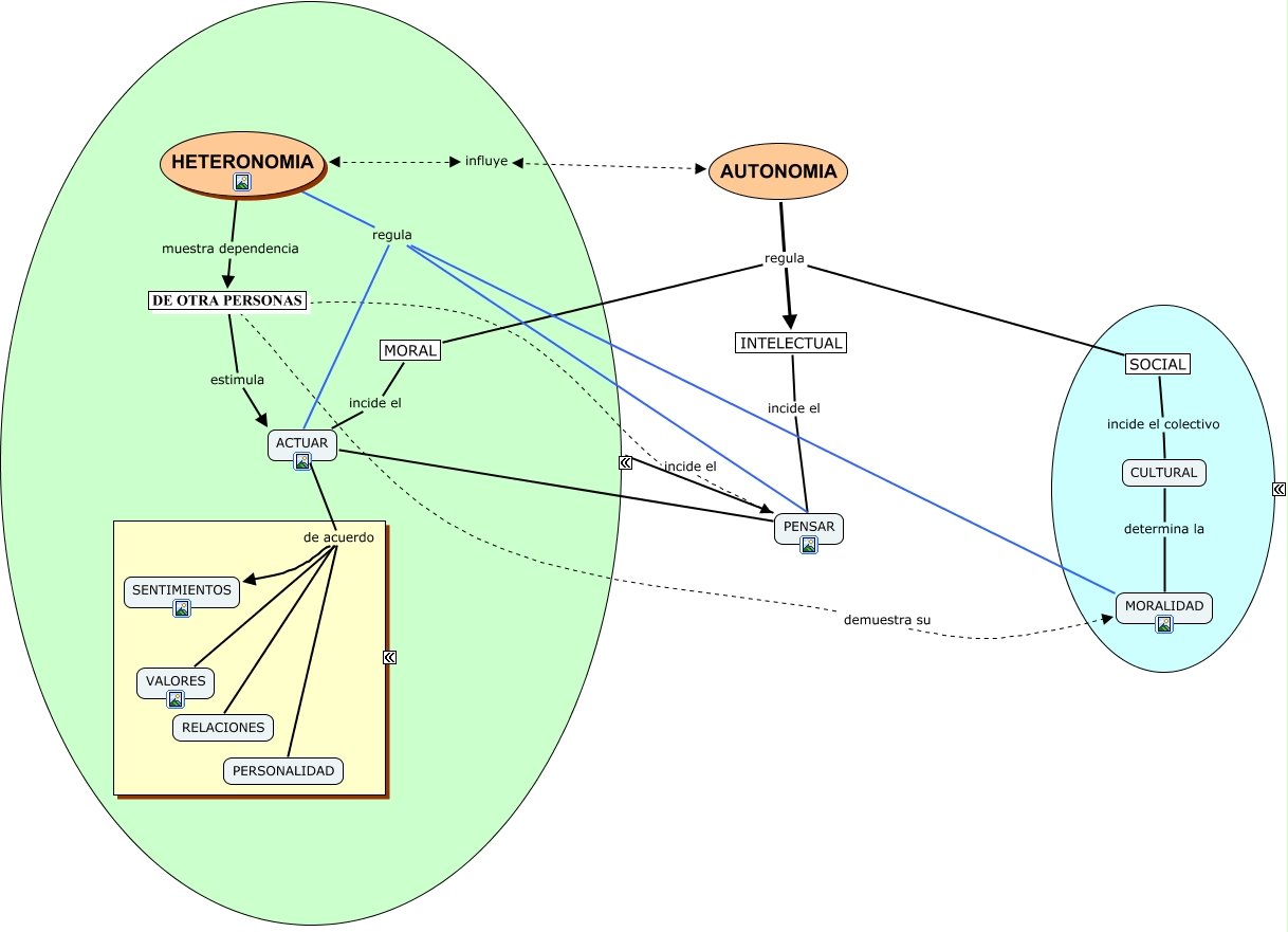 autonomia, VALORES de acuerdo SENTIMIENTOS, HETERONOMIA muestra dependencia DE OTRA PERSONAS, DE OTRA PERSONAS estimula ACTUAR, MORAL incide el ACTUAR, VALORES de acuerdo RELACIONES, HETERONOMIA regula PENSAR, HETERONOMIA regula ACTUAR, ACTUAR de acuerdo RELACIONES, PENSAR según sea TOMA DE DECISIONES, PENSAR según sea MANEJO DE INFORMACIÓN