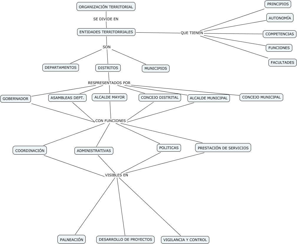 ORGANIZACION TERRITORIAL, CONCEJO DISTRITAL CON FUNCIONES POLITICAS, DISTRITOS RESPRESENTADOS POR GOBERNADOR, ALCALDE MUNICIPAL CON FUNCIONES POLITICAS, DISTRITOS RESPRESENTADOS POR CONCEJO MUNICIPAL, ASAMBLEAS DEPT. CON FUNCIONES ADMINISTRATIVAS, DISTRITOS RESPRESENTADOS POR ALCALDE MAYOR, GOBERNADOR CON FUNCIONES PRESTACIÓN DE SERVICIOS, ASAMBLEAS DEPT. CON FUNCIONES PRESTACIÓN DE SERVICIOS, ALCALDE MAYOR CON FUNCIONES COORDINACIÓN, COORDINACIÓN VISIBLES EN PALNEACIÓN