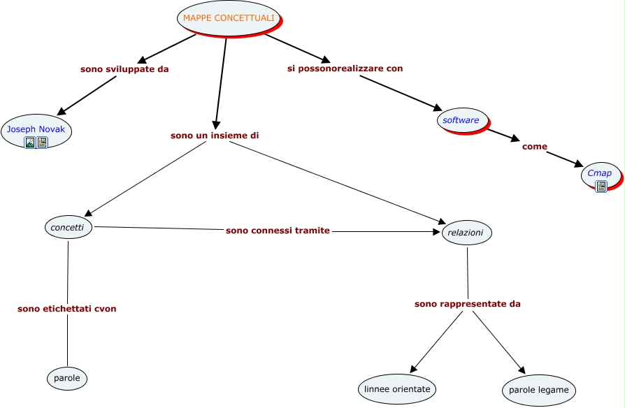 mappe concettuali, software come Cmap, MAPPE CONCETTUALI si possonorealizzare con software, concetti sono connessi tramite relazioni, relazioni sono rappresentate da parole legame, MAPPE CONCETTUALI sono sviluppate da Joseph Novak, relazioni sono rappresentate da linnee orientate, MAPPE CONCETTUALI sono un insieme di relazioni, concetti sono etichettati cvon parole, MAPPE CONCETTUALI sono un insieme di concetti