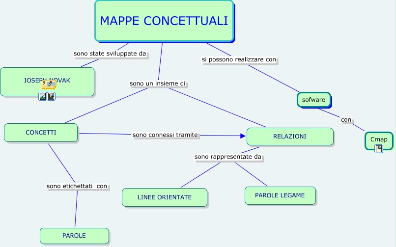 mappe concettuali 1, CONCETTI sono etichettati con PAROLE, CONCETTI sono connessi tramite RELAZIONI, MAPPE CONCETTUALI sono un insieme di RELAZIONI, RELAZIONI sono rappresentate da PAROLE LEGAME, MAPPE CONCETTUALI sono un insieme di CONCETTI, RELAZIONI sono rappresentate da LINEE ORIENTATE, MAPPE CONCETTUALI sono state sviluppate da IOSEPH NOVAK, MAPPE CONCETTUALI si possono realizzare con sofware, sofware con Cmap