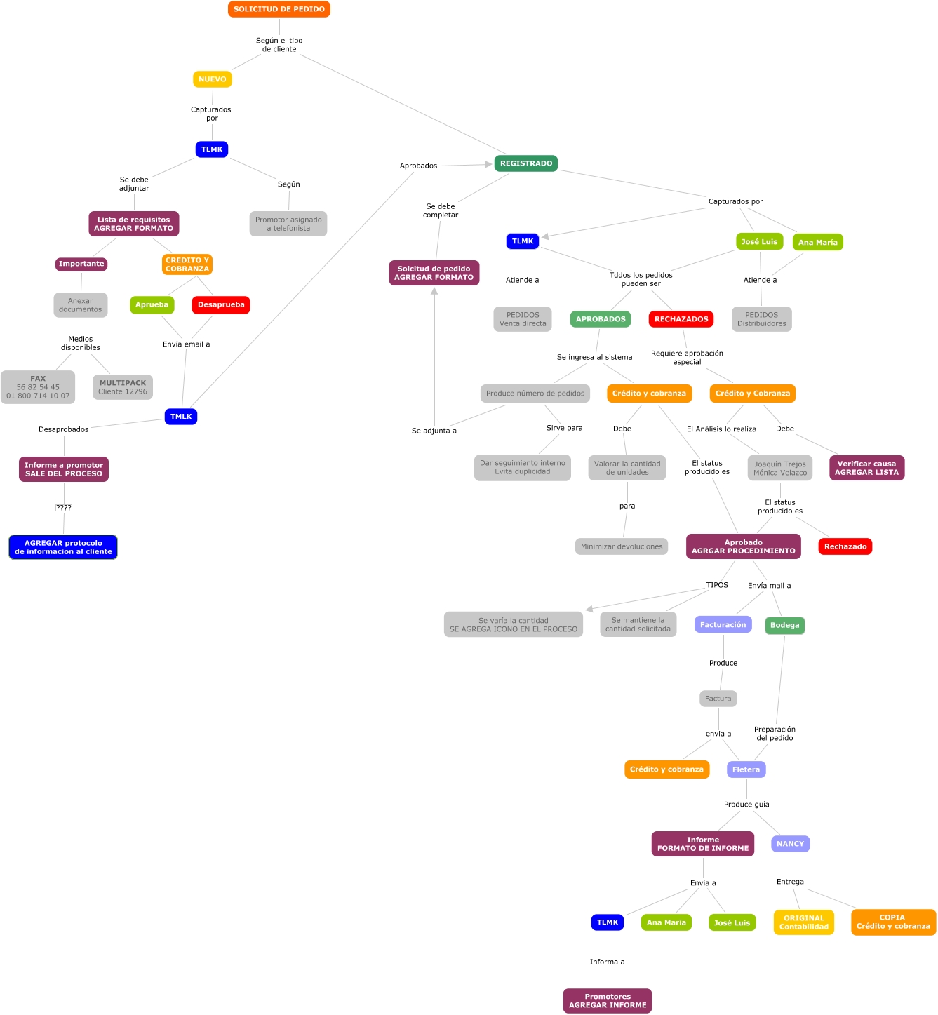 Pedidos ST, APROBADOS Se ingresa al sistema Produce número de pedidos, Fletera Produce guía NANCY, Anexar documentos Medios disponibles MULTIPACK Cliente 12796, Joaquín Trejos Mónica Velazco El status producido es Rechazado, TLMK Se debe adjuntar Lista de requisitos AGREGAR FORMATO, NANCY Entrega COPIA Crédito y cobranza, Crédito y cobranza El status producido es Aprobado AGRGAR PROCEDIMIENTO, TLMK Tddos los pedidos pueden ser APROBADOS, Aprobado AGRGAR PROCEDIMIENTO TIPOS Se mantiene la cantidad solicitada, Aprobado AGRGAR PROCEDIMIENTO Envía mail a Bodega