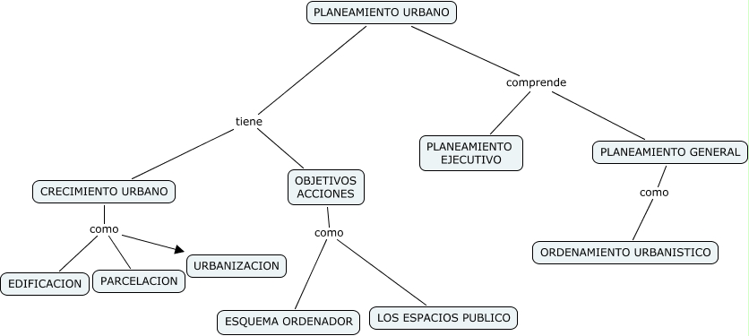 CAPITULO VIII JENIFER RUIZ, PLANEAMIENTO URBANO comprende PLANEAMIENTO EJECUTIVO, CRECIMIENTO URBANO como URBANIZACION, CRECIMIENTO URBANO como PARCELACION, OBJETIVOS ACCIONES como LOS ESPACIOS PUBLICO, PLANEAMIENTO URBANO tiene OBJETIVOS ACCIONES, PLANEAMIENTO GENERAL como ORDENAMIENTO URBANISTICO, PLANEAMIENTO URBANO comprende PLANEAMIENTO GENERAL, OBJETIVOS ACCIONES como ESQUEMA ORDENADOR, CRECIMIENTO URBANO como EDIFICACION, PLANEAMIENTO URBANO tiene CRECIMIENTO URBANO