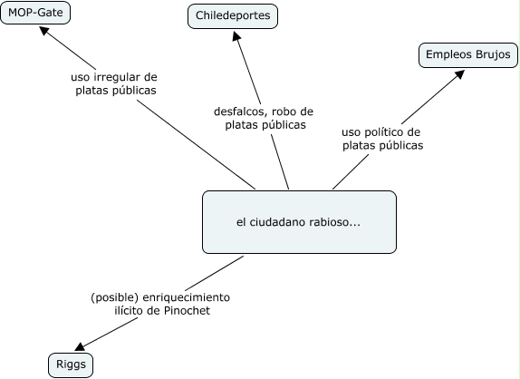 El Ciudadano Rabioso, el ciudadano rabioso... uso político de platas públicas Empleos Brujos, el ciudadano rabioso... desfalcos, robo de platas públicas Chiledeportes, el ciudadano rabioso... (posible) enriquecimiento ilícito de Pinochet Riggs, el ciudadano rabioso... uso irregular de platas públicas MOP-Gate