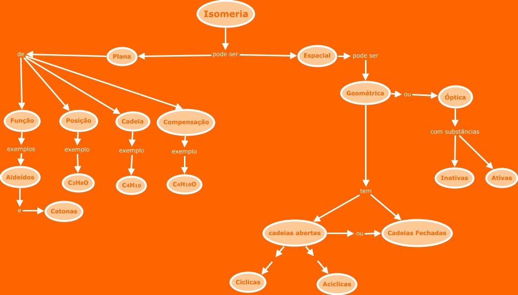 Isomeria-Gabi, Posição exemplo C3H8O, Função exemplos Aldeídos, cadeias abertas ou Cadeias Fechadas, Geométrica tem cadeias abertas, Óptica com substâncias Ativas, Plana de Posição, Isomeria pode ser Plana, Isomeria pode ser Espacial, Geométrica ou Óptica, Plana de Cadeia