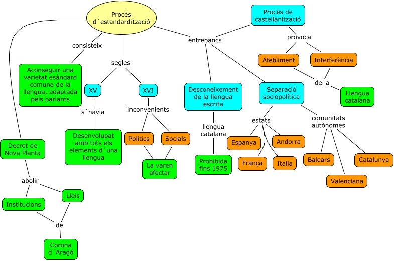 Proces destandarditzacio, Procès d´estandardització entrebancs Separació sociopolítica, Procès d´estandardització ???? Decret de Nova Planta, Procès d´estandardització segles XV, XVI inconvenients Politics, Interferència de la Llengua catalana, Separació sociopolítica comunitats autònomes Catalunya, Procès de castellanització provoca Interferència, Procès d´estandardització segles XVI, Procès d´estandardització entrebancs Desconeixement de la llengua escrita, Afebliment de la Llengua catalana