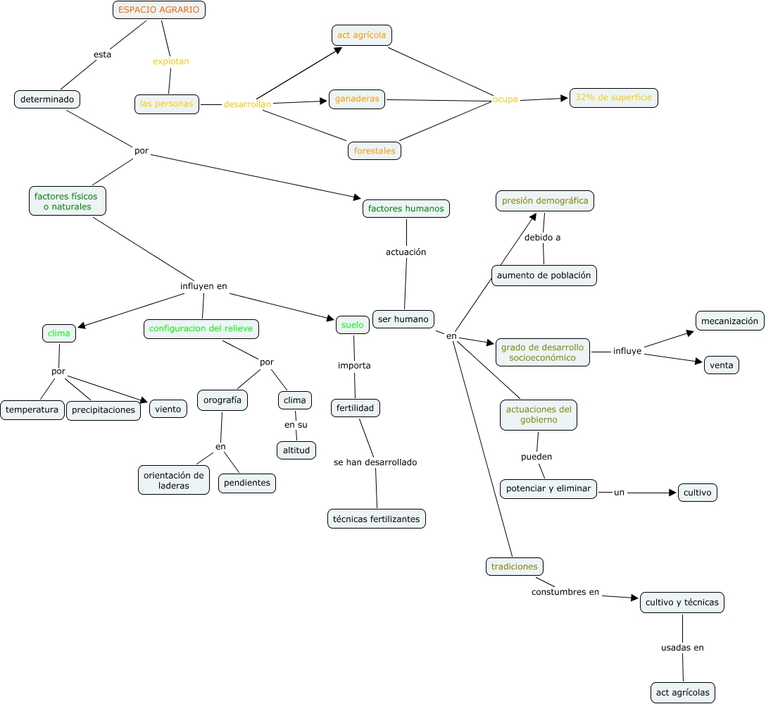 espacio agrario, ESPACIO AGRARIO esta determinado, grado de desarrollo socioeconómico influye venta, orografía en pendientes, las personas desarrollan act agrícola, las personas desarrollan ganaderas, grado de desarrollo socioeconómico influye mecanización, configuracion del relieve por orografía, suelo importa fertilidad, ser humano en grado de desarrollo socioeconómico, forestales ocupa 32% de superficie