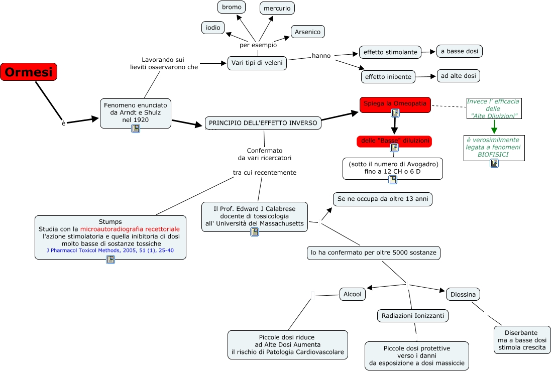 Questa Cmap, creata con IHMC CmapTools, contiene informazioni relative a: Ormesi, lo ha confermato per oltre 5000 sostanze Radiazioni Ionizzanti, Vari tipi di veleni per esempio bromo, Spiega la Omeopatia Invece l' efficacia delle "Alte Diluizioni" è verosimilmente legata a fenomeni BIOFISICI, PRINCIPIO DELL'EFFETTO INVERSO Confermato da vari ricercatori tra cui recentemente Il Prof. Edward J Calabrese docente di tossicologia all' Università del Massachusetts, Alcool Piccole dosi riduce ad Alte Dosi Aumenta il rischio di Patologia Cardiovascolare, Vari tipi di veleni per esempio iodio, Fenomeno enunciato da Arndt e Shulz nel 1920 ???? PRINCIPIO DELL'EFFETTO INVERSO, PRINCIPIO DELL'EFFETTO INVERSO ???? Spiega la Omeopatia, Il Prof. Edward J Calabrese docente di tossicologia all' Università del Massachusetts Se ne occupa da oltre 13 anni, Il Prof. Edward J Calabrese docente di tossicologia all' Università del Massachusetts lo ha confermato per oltre 5000 sostanze, Spiega la Omeopatia delle "Basse" diluizioni (sotto il numero di Avogadro) fino a 12 CH o 6 D, PRINCIPIO DELL'EFFETTO INVERSO Confermato da vari ricercatori tra cui recentemente Stumps Studia con la microautoradiografia recettoriale l'azione stimolatoria e quella inibitoria di dosi molto basse di sostanze tossiche J Pharmacol Toxicol Methods, 2005, 51 (1), 25-40, Vari tipi di veleni hanno effetto stimolante, lo ha confermato per oltre 5000 sostanze Alcool, effetto inibente ???? ad alte dosi, Radiazioni Ionizzanti Piccole dosi protettive verso i danni da esposizione a dosi massiccie, Vari tipi di veleni per esempio Arsenico, Ormesi è Fenomeno enunciato da Arndt e Shulz nel 1920, Vari tipi di veleni hanno effetto inibente, Diossina Diserbante ma a basse dosi stimola crescita
