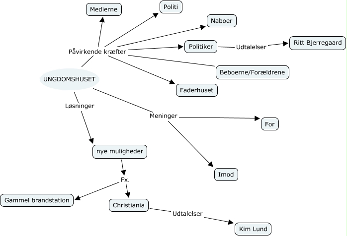 Ungdomshuset, UNGDOMSHUSET Påvirkende kræfter Politi, UNGDOMSHUSET Meninger For, UNGDOMSHUSET Løsninger nye muligheder, UNGDOMSHUSET Påvirkende kræfter Politiker, UNGDOMSHUSET Påvirkende kræfter Beboerne/Forældrene, Politiker Udtalelser Ritt Bjerregaard, nye muligheder Fx. Christiania, UNGDOMSHUSET Påvirkende kræfter Medierne, Christiania Udtalelser Kim Lund, UNGDOMSHUSET Meninger Imod