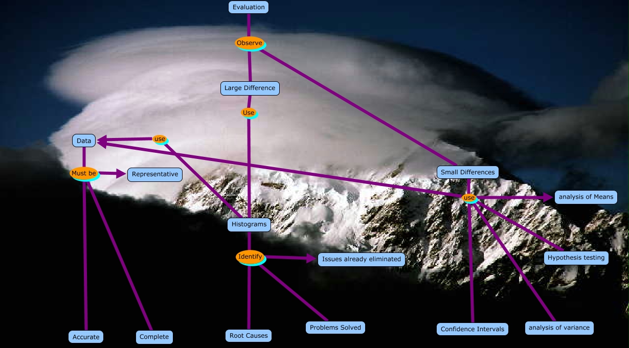 Evaluation Methods, Data Must be Representative, Histograms Identify Problems Solved, Small Differences use analysis of variance, Evaluation Observe Small Differences, Data Must be Complete, Data Must be Accurate, Evaluation Observe Large Difference, Small Differences use Data, Histograms Identify Root Causes, Histograms Identify Issues already eliminated