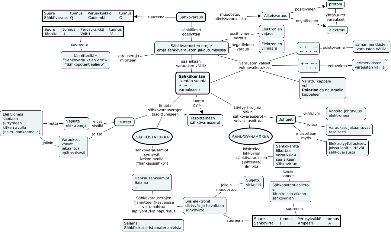 sähkö, Alkeisvaraus positiivinen protoni, Eristeet eivät sisällä Vapaita elektroneja, SÄHKÖDYNAMIIKKA käsittelee liikkuvien sähkövarauksien (johteissa) ilmiöitä Suljettu virtapiiri, Johteet joissa Varaukset jakaantuvat tasaisesti, Sähkövaraus suureena Suure tunnus Perusyksikkö tunnus Sähkövaraus Q Coulombi C, Hankausähköilmiöt Salama ... Sähkövarauserojen (jännitteen)kasvaessa voi tapahtua läpilyönti/kipinäpurkaus Salama Sähköiskut eristemateriaaleista, Sähkökentän -kentän suunta + ⇒ - varaukseen Löytyy tie, jota pitkin sähkövarauserot voivat tasoittua Tasoittamaan sähkövarauserot, Sähkövarausten eroja/ eroja sähkövarausten jakautumisessa varausten väliset voimavaikutukset Sähkökentän -kentän suunta + ⇒ - varaukseen, SÄHKÖSTATIIKKA sähkövarausilmiöt syntyvät kitkan avulla ("hankaussähkö") Hankausähköilmiöt Salama ..., Sähkövarausten eroja/ eroja sähkövarausten jakautumisessa negatiivinen varaus Elektronien ylimäärä
