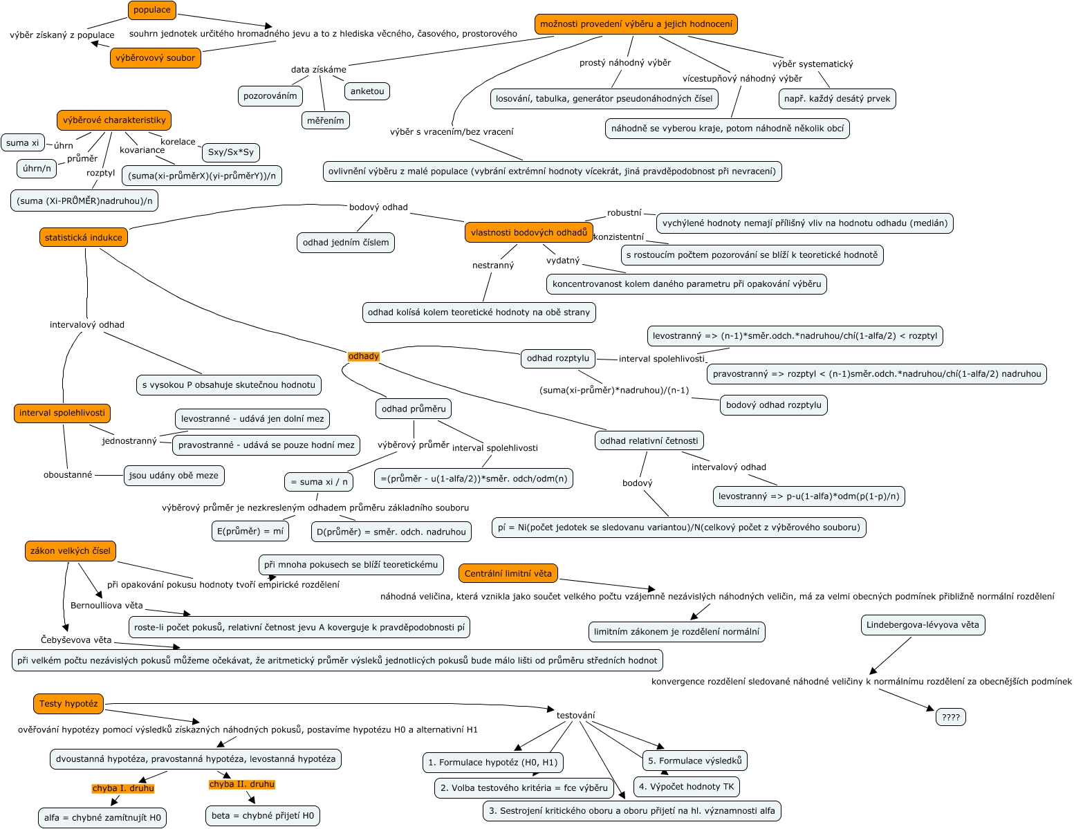 A - 2 Statistické úsudky, možnosti provedení výběru a jejich hodnocení data získáme anketou, vlastnosti bodových odhadů konzistentní s rostoucím počtem pozorování se blíží k teoretické hodnotě, možnosti provedení výběru a jejich hodnocení data získáme měřením, = suma xi / n výběrový průměr je nezkresleným odhadem průměru základního souboru D(průměr) = směr. odch. nadruhou, statistická indukce intervalový odhad s vysokou P obsahuje skutečnou hodnotu, možnosti provedení výběru a jejich hodnocení data získáme pozorováním, vlastnosti bodových odhadů robustní vychýlené hodnoty nemají přílišný vliv na hodnotu odhadu (medián), možnosti provedení výběru a jejich hodnocení prostý náhodný výběr losování, tabulka, generátor pseudonáhodných čísel, odhad rozptylu (suma(xi-průměr)*nadruhou)/(n-1) bodový odhad rozptylu, možnosti provedení výběru a jejich hodnocení výběr systematický např. každý desátý prvek