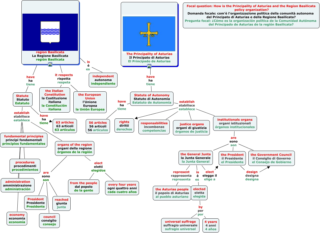 Principado de Asturias, The Principality of Asturias Il Principato di Asturias El Principado de Asturias have ha tiene Statute of Autonomy Statuto di Autonomia Estatuto de Autonomía, Statute of Autonomy Statuto di Autonomia Estatuto de Autonomía have ha tiene 56 articles 56 articoli 56 artículos, Statute of Autonomy Statuto di Autonomia Estatuto de Autonomía establish stabilisce establece justice organs organi di giustizia órganos de justicia, Statute Statuto Estatuto establish stabilisce establece economy economia economía, Statute of Autonomy Statuto di Autonomia Estatuto de Autonomía establish stabilisce establece institutionals organs organi istituzionali órganos institucionales, Statute Statuto Estatuto establish stabilisce establece fundamental principles principi fondamentali principios fundamentales, institutionals organs organi istituzionali órganos institucionales are sono son the Government Council il Consiglio di Governo el Consejo de Gobierno, organs of the region organi della regione órganos de la región elect eletti elegidos from the people dal popolo de la gente, Statute of Autonomy Statuto di Autonomia Estatuto de Autonomía establish stabilisce establece responsabilities incombenze competencias, Statute Statuto Estatuto establish stabilisce establece procedures procedimenti procedimientos