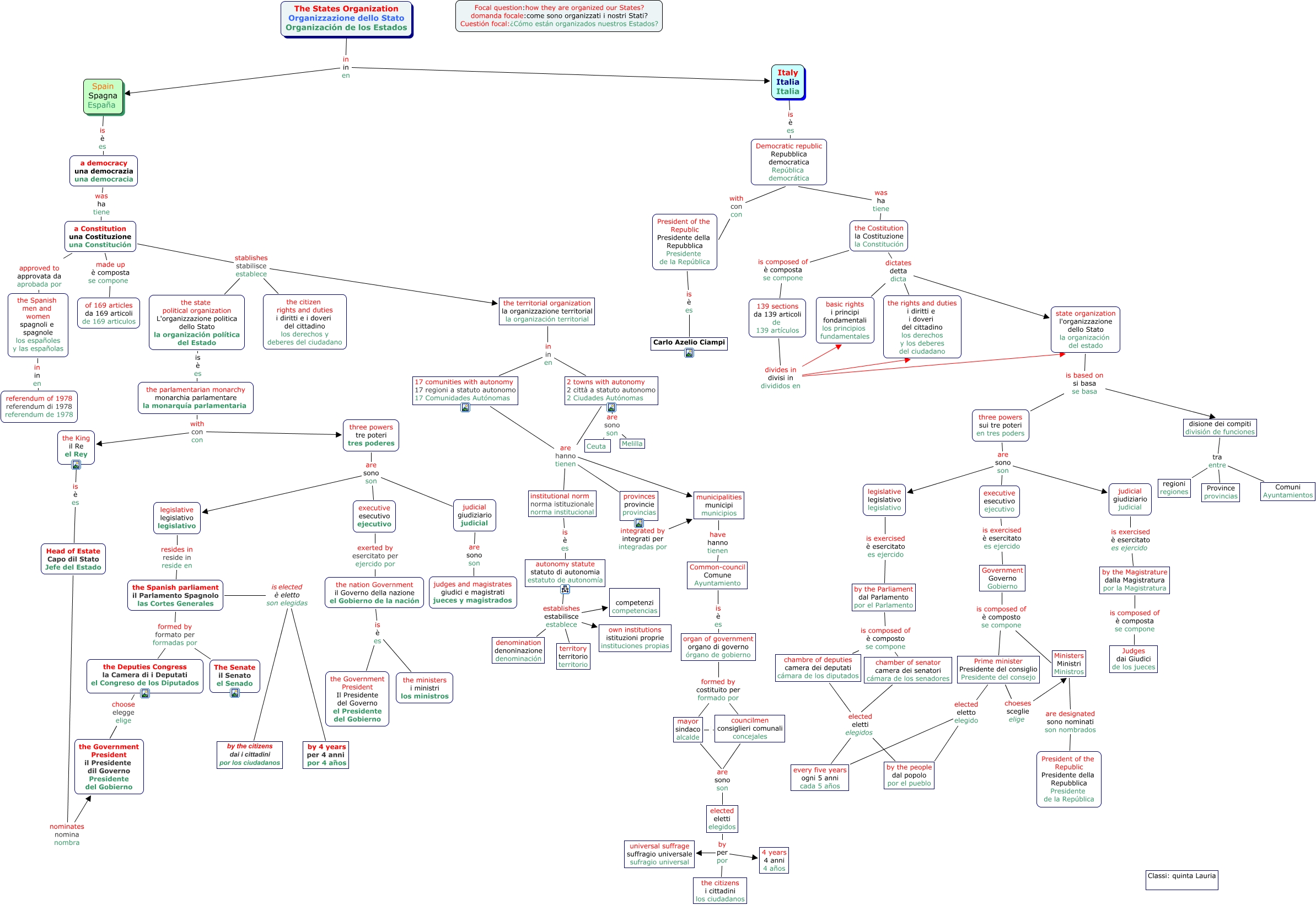 Organizzazione degli Stati Spagna-Italia, 2 towns with autonomy 2 città a statuto autonomo 2 Ciudades Autónomas are sono son Ceuta, 17 comunities with autonomy 17 regioni a statuto autonomo 17 Comunidades Autónomas are hanno tienen municipalities municipi municipios, chambre of deputies camera dei deputati cámara de los diputados elected eletti elegidos by the people dal popolo por el pueblo, 2 towns with autonomy 2 città a statuto autonomo 2 Ciudades Autónomas are hanno tienen institutional norm norma istituzionale norma institucional, Ministers Ministri Ministros are designated sono nominati son nombrados President of the Republic Presidente della Repubblica Presidente de la República, Prime minister Presidente del consiglio Presidente del consejo elected eletto elegido by the people dal popolo por el pueblo, councilmen consiglieri comunali concejales are sono son elected eletti elegidos, the nation Government il Governo della nazione el Gobierno de la nación is è es the ministers i ministri los ministros, organ of government organo di governo órgano de gobierno formed by costituito per formado por councilmen consiglieri comunali concejales, 2 towns with autonomy 2 città a statuto autonomo 2 Ciudades Autónomas are hanno tienen provinces provincie provincias