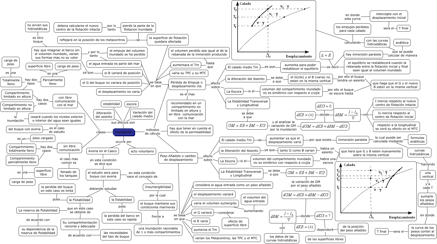 Este Cmap, tiene información relacionada con: Inundación, Peso Añadido o cambio de desplazamiento efecto sobre La Estabilidad Transversal y Longitudinal, Inundación métodos de cálculo Peso Añadido o cambio de desplazamiento, Peso Añadido o cambio de desplazamiento efecto sobre El calado medio Tm, donde, la variación de GM por el peso añadido, Parcialmente lleno es una carga de peso, Inundación clases con libre comunicación con el mar, sin libre comunicación el caso mas común es llenado de los tanques, La Escora si el volumen del compartimento inundado no es simétrico con respecto a crujía, Inundación sus efectos son estabilidad, Compartimiento limitado en altura hay dos tipos Totalmente lleno, la variación de GM por el peso añadido, Peso Añadido o cambio de desplazamiento se basa en que el desplazamiento variará, hay inmersión paralela que se puede calcular de manera análitica, intercepte con el desplazamiento inicial sera el T final, donde, La Estabilidad Transversal y Longitudinal se debe a que, aumentara el Tm hasta que el volumen perdido sea igual al de la rebanada de la inmersión producida, el agua entrada es parte del mar y por lo tanto el empuje del volumen inundado se ha perdido, dependerá de las superficies libres