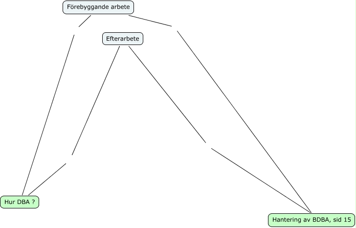 Frågor till okg, Efterarbete Hantering av BDBA, sid 15, Efterarbete Hur DBA ?, Förebyggande arbete Hur DBA ?, Förebyggande arbete Hantering av BDBA, sid 15