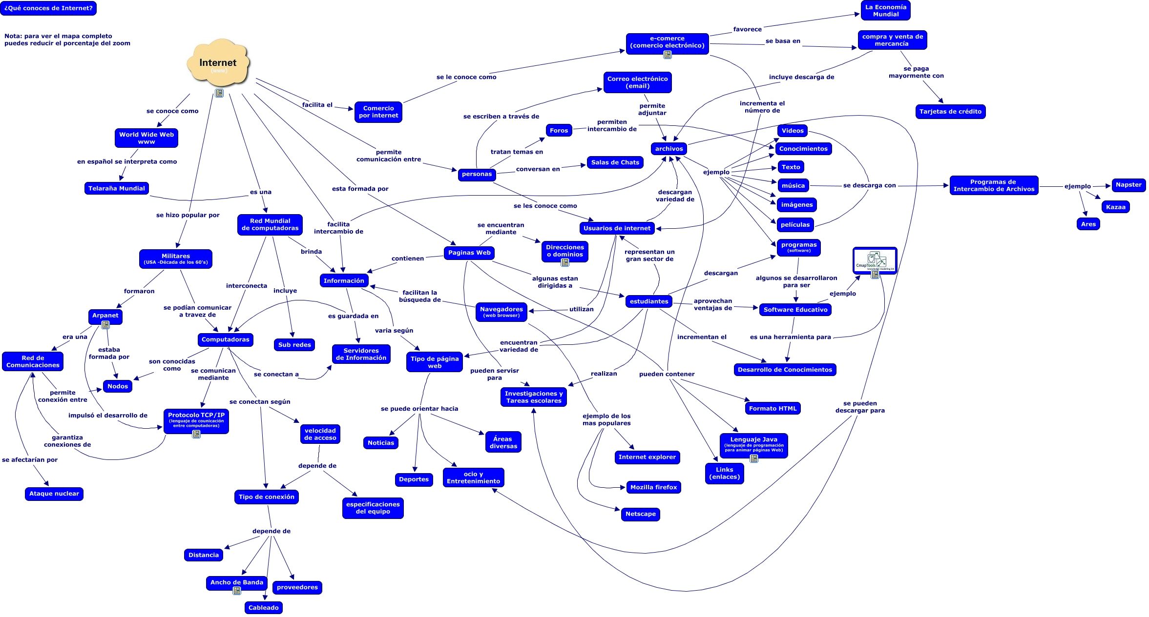 Mapa Internet, Paginas Web pueden contener Lenguaje Java (lenguaje de programación para animar páginas Web), Militares (USA -Década de los 60's) formaron Arpanet, (www) se conoce como World Wide Web www, (www) facilita el Comercio por internet, Red Mundial de computadoras incluye Sub redes, estudiantes incrementan el Desarrollo de Conocimientos, Red Mundial de computadoras interconecta Computadoras, Usuarios de internet utilizan Navegadores (web browser), Navegadores (web browser) ejemplo de los mas populares Internet explorer, archivos se pueden descargar para Investigaciones y Tareas escolares