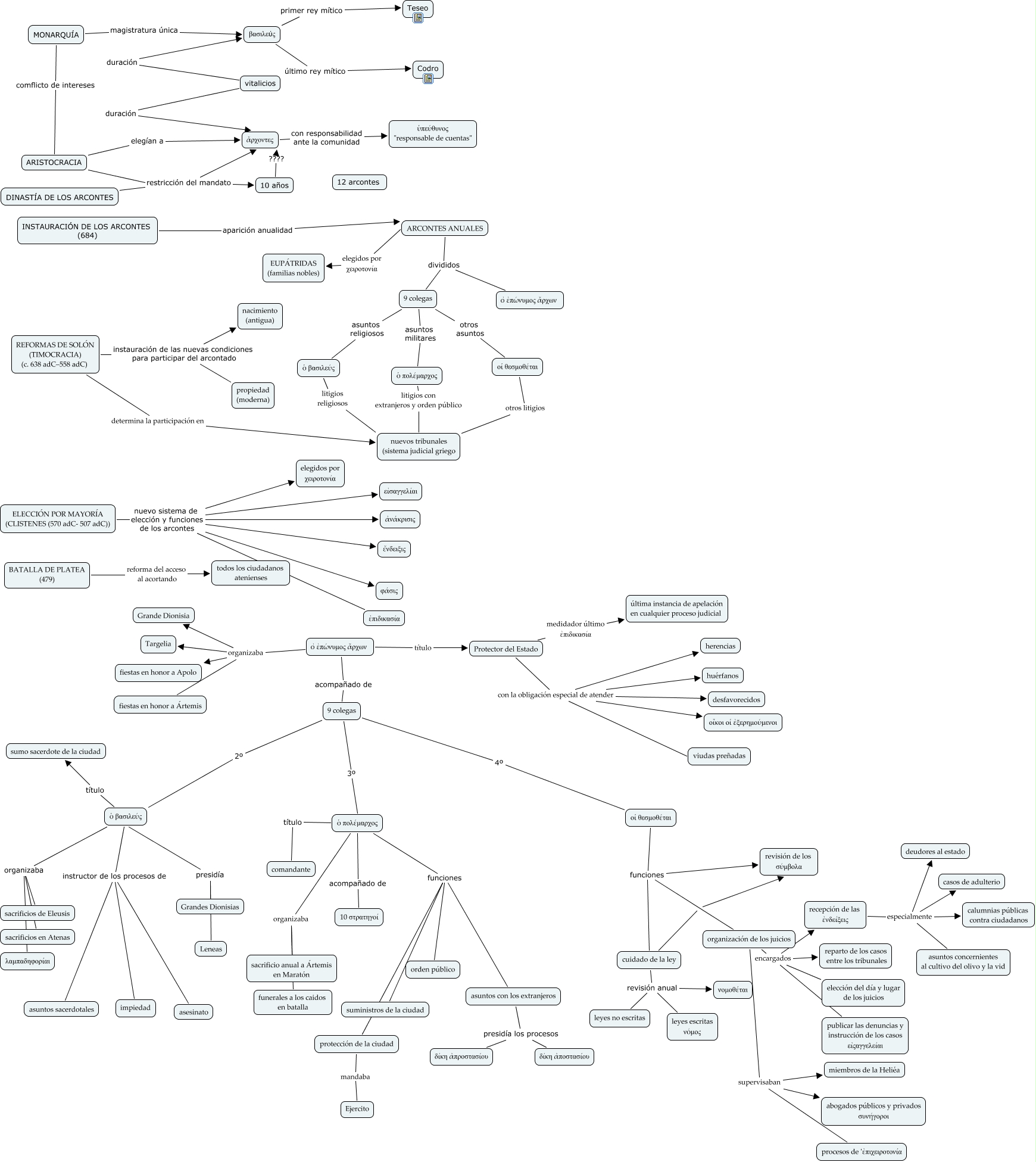 magistraturas griegas arcontes, ὀ ἐπώνυμος ἄρχων acompañado de 9 colegas, ὁ πολέμαρχος organizaba sacrificio anual a Ártemis en Maratón, DINASTÍA DE LOS ARCONTES restricción del mandato ἄρχοντες, 9 colegas asuntos religiosos ὁ βασιλεύς, ARISTOCRACIA restricción del mandato 10 años, organización de los juicios encargados elección del día y lugar de los juicios, recepción de las ἐνδείξεις especialmente casos de adulterio, ELECCIÓN POR MAYORÍA (CLISTENES (570 adC- 507 adC)) nuevo sistema de elección y funciones de los arcontes ἐπιδικασία, Protector del Estado con la obligación especial de atender huérfanos, ELECCIÓN POR MAYORÍA (CLISTENES (570 adC- 507 adC)) nuevo sistema de elección y funciones de los arcontes ἀνάκρισις